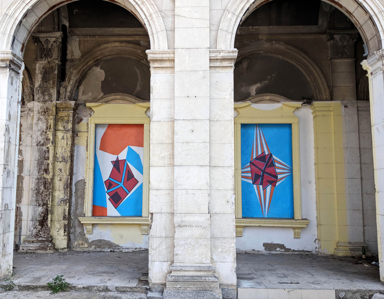 When tasked with producing a mural for the city’s brutalist railway station, Sabina engaged in a collaborative discussion as to what the murals could be. Then it was decided jointly, to craft geometric murals that speak to the city’s architecture as well as highlight the unique nature of the building to which Sabina’s mural is directly apply to and part of.